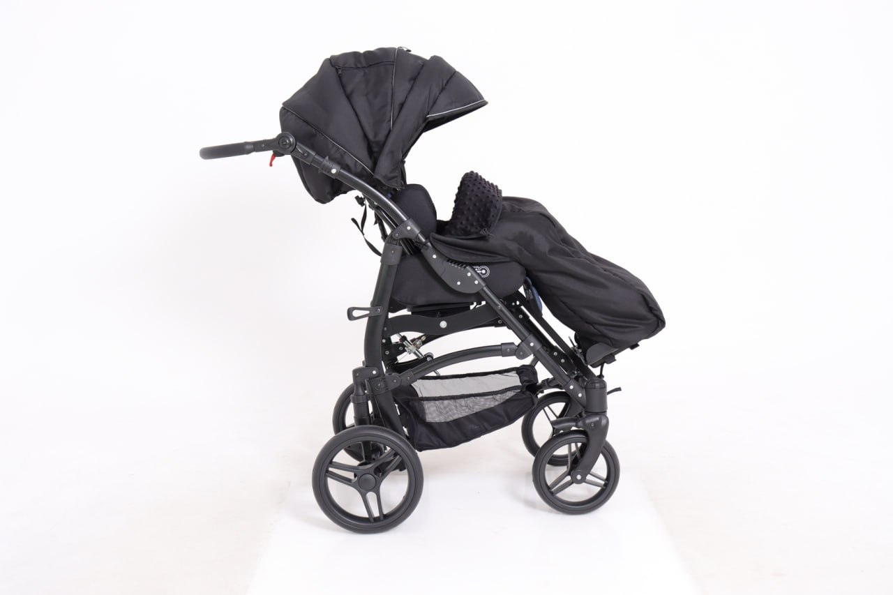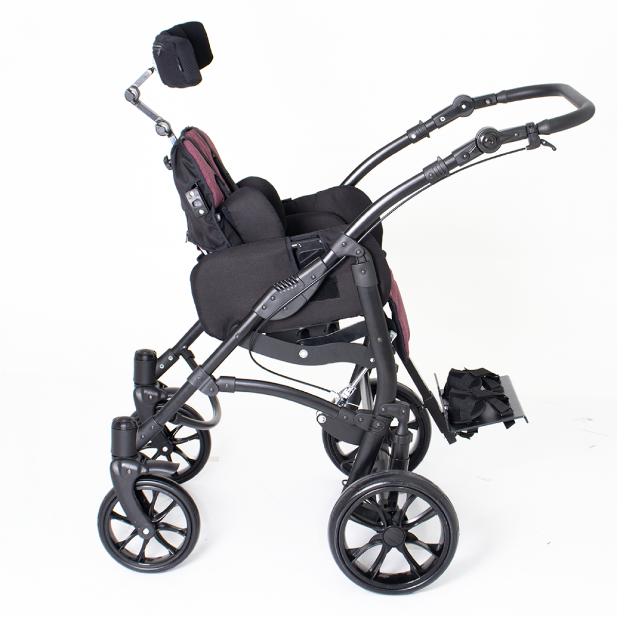 Система поддержки включает регулируемые грудные и бедренные пелоты, абдуктор и 4-точечные ремни. В зависимости от выбранного торгового предложения коляска комплектуется короткой спинкой с подголовником Hexagon или длинной спинкой с регулируемыми стабилизаторами головы.